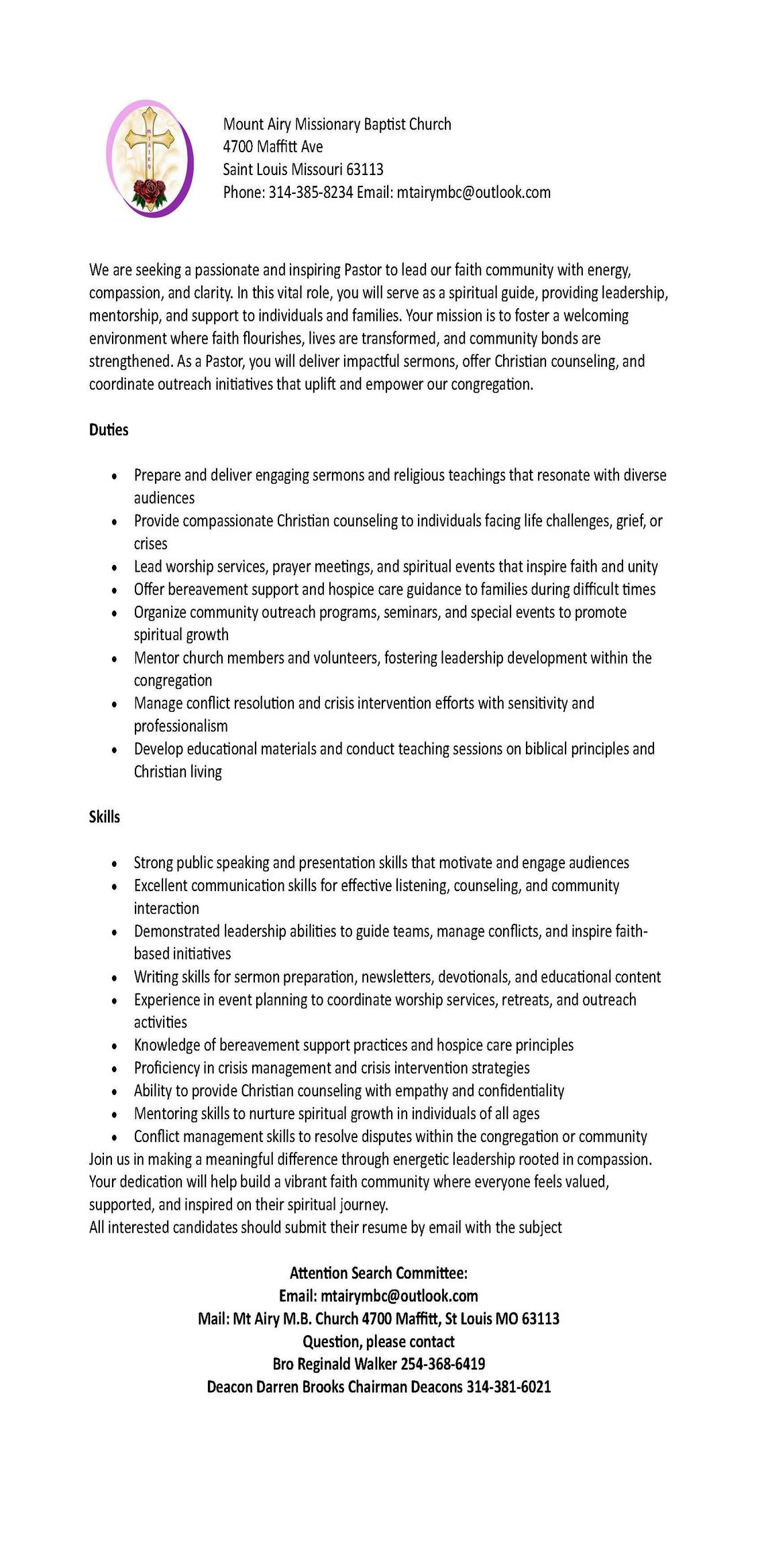 Mount Airy Pastor Search