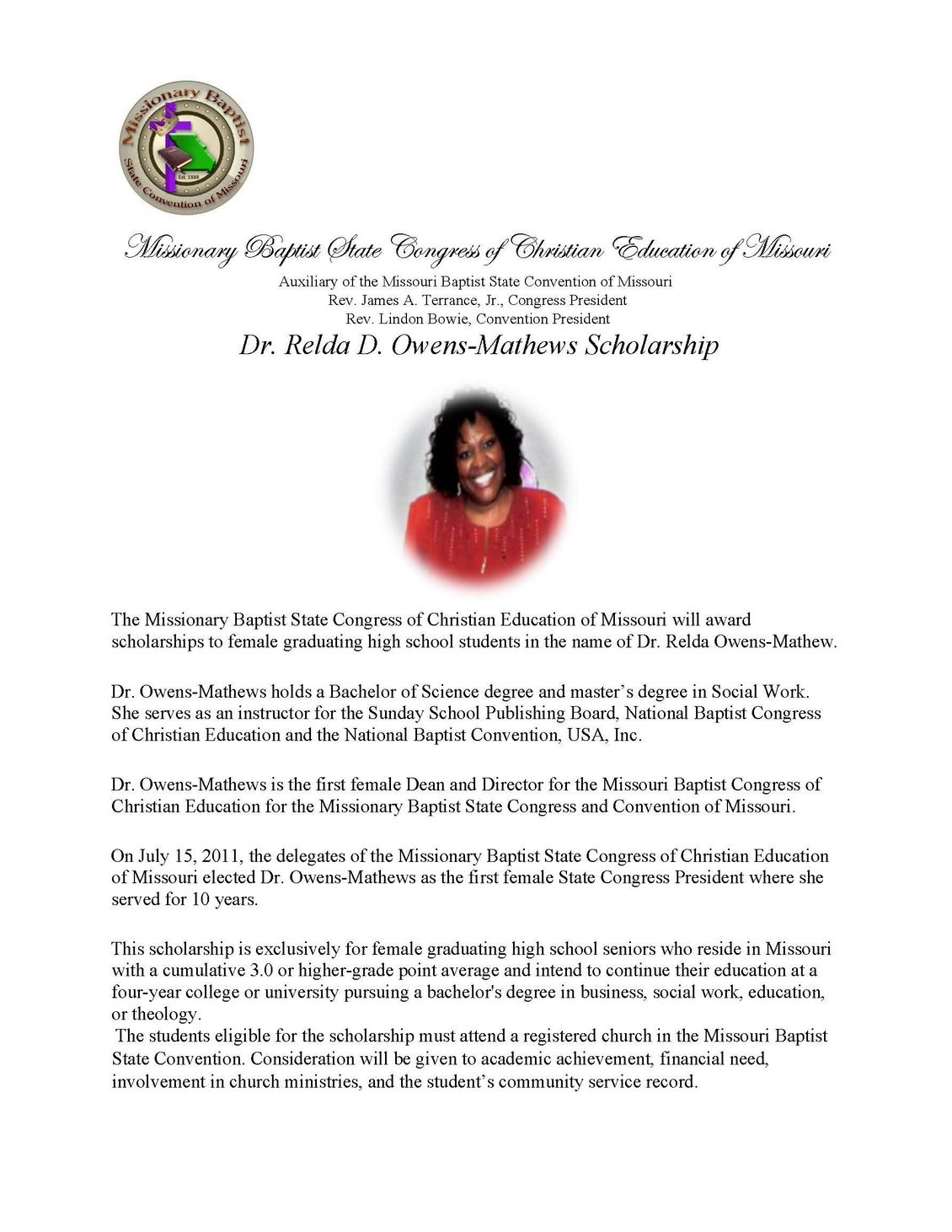 Dr. Relda Owens-Mathews Scholarship Information