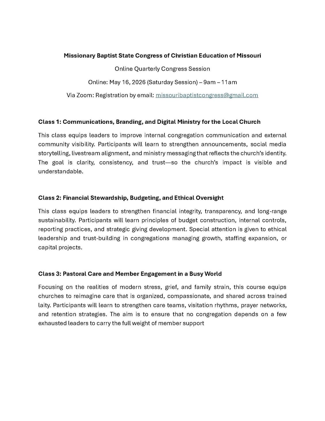 May Virtual Congress Classes